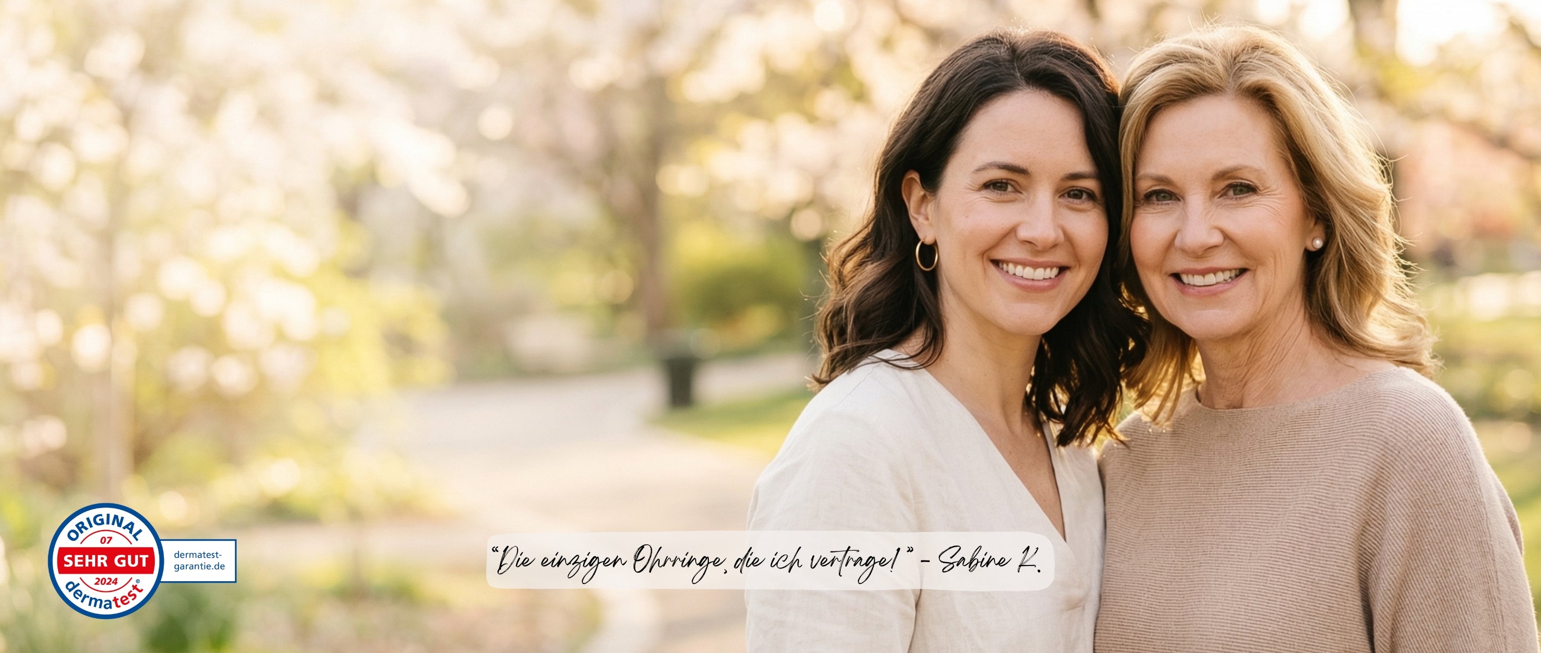 "Titan bildet eine stabile Oxidschicht, die Metallionen-Kontakt mit dem Gewebe reduziert. Deshalb wird es für Herzschrittmacher und Gelenkimplantate verwendet. Ich persönlich trage meine nonu-Ohrringe jeden Tag."